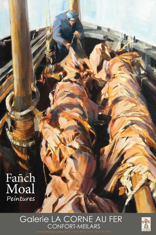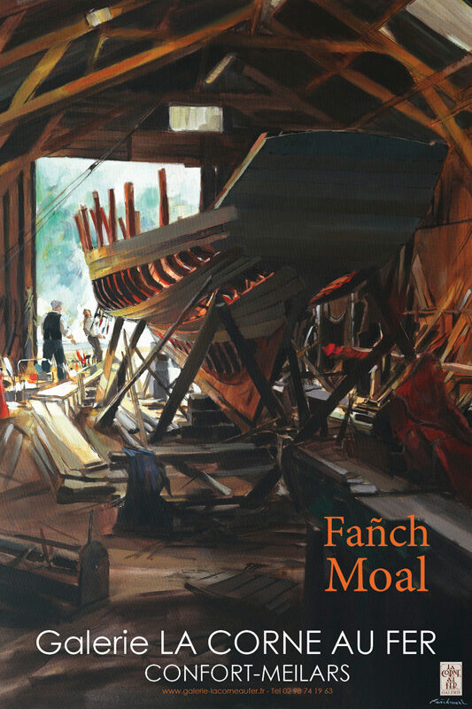 Plébiscité pour soutenir différentes manifestations, Fañch Moal réalise de nombreuses affiches : fêtes maritimes de Douarnenez, SNSM, fêtes Mouezh ar Guelted foire à l’ancienne de Pont-Croix, fête des bruyères de Beuzec-Cap-Sizun… Illustré par de nombreuses toiles ou dessins, cet ouvrage présente une belle part du travail de l’artiste sur le monde maritime ou rural.